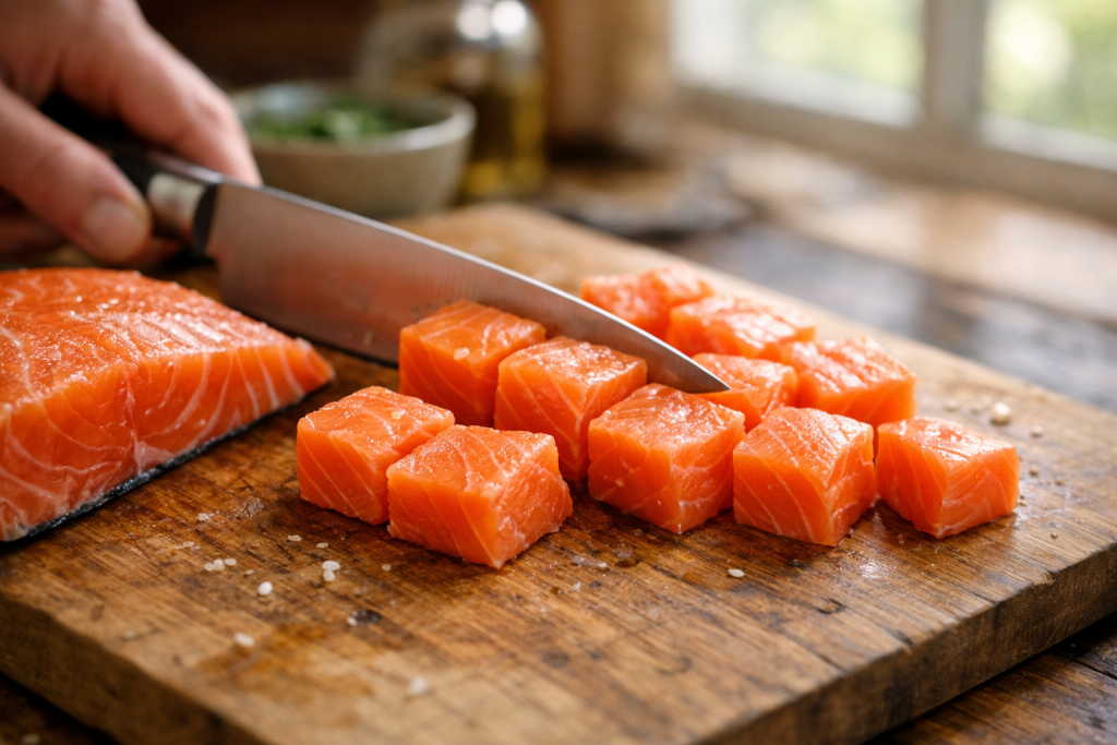 • 1 lb salmon fillets (skinless) – Cut into bite-sized cubes for even cooking.