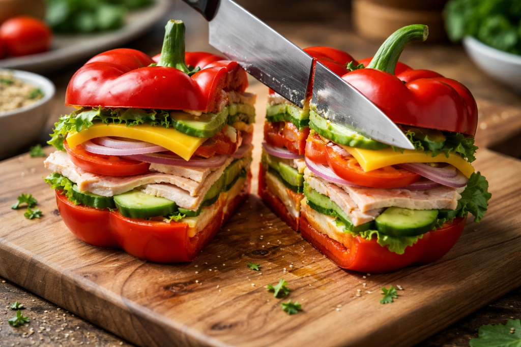 If you’re looking for a healthy low-carb sandwich alternative, this Bell Pepper Sandwich is the perfect solution. Instead of bread, fresh bell peppers create a crunchy, colorful base packed with flavor and nutrients.