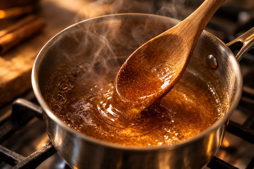 In a small saucepan, combine brown sugar, water, cinnamon, and sea salt.