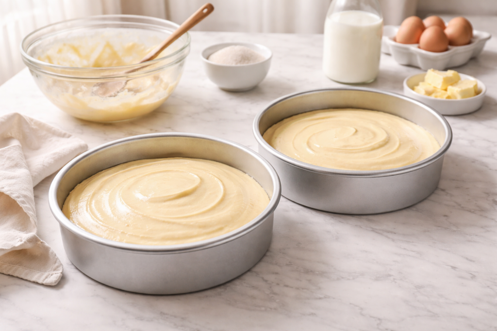 Preheat your oven to 350°F (175°C). Grease two 8-inch cake pans or one 9×13 baking dish.