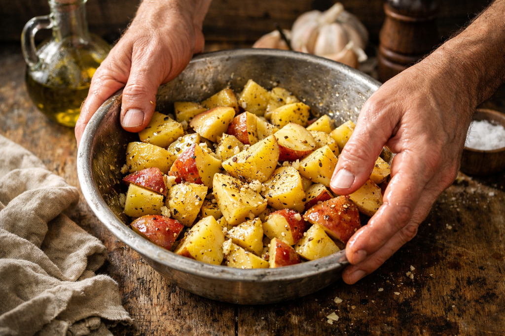 Toss potatoes with oil and seasoning. Bake for 10β15 minutes.