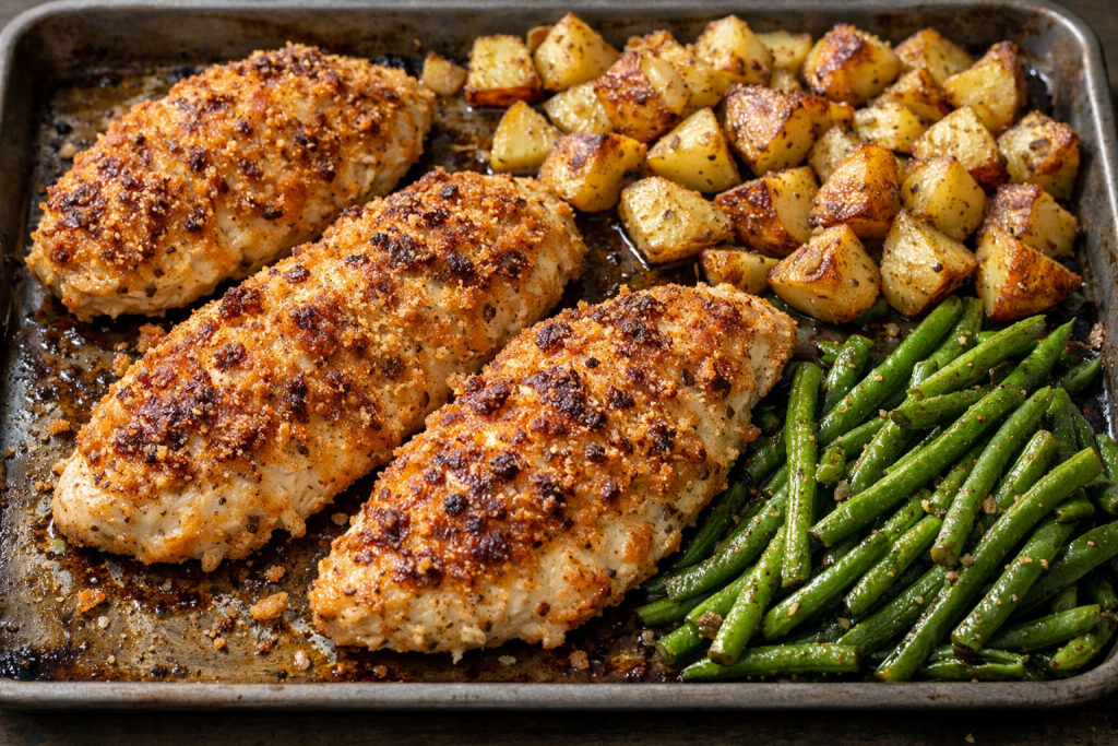 This parmesan crusted chicken sheet pan recipe is a perfect combination of crispy chicken, roasted potatoes, and fresh vegetables. Itβs easy to make, full of flavor, and ideal for quick family dinners.
