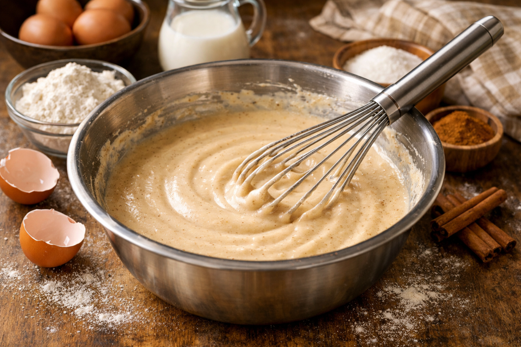 Mix the dry ingredients together. Then add the egg and milk and whisk until a smooth batter forms.