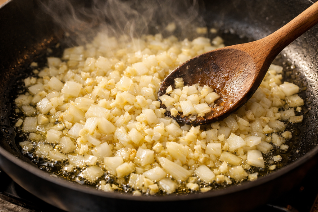 Step 1: Cook onion and garlic